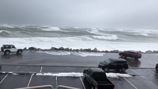 Шторм на побережье Хемптон Бич. Штат Нью - Хемпшир, США (17.01.2022).
