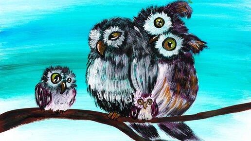 Как легко нарисовать семью сов с детьми. Рисуем с детьми красками.