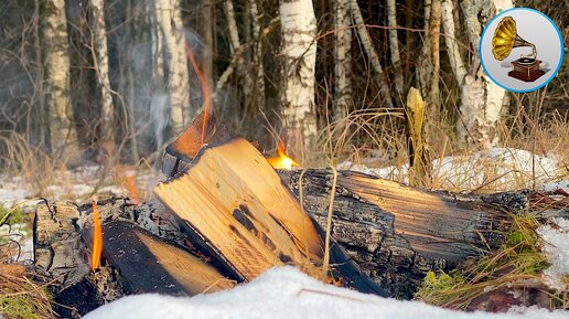 Зимний костер у Замерзшего озера. Расслабляющий треск дров для сна.