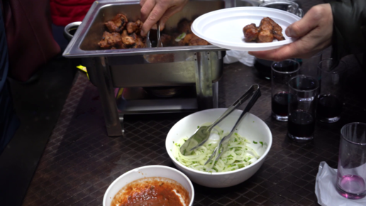Интерьер и посуда одного из банкетных залов ресторана "Атаман" на ул. Братиславской в Москве и бесплатная дегустация шашлыка