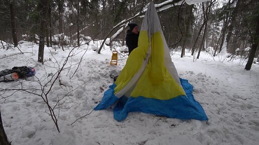 Одиночный поход в зимний лес с палаткой. Готовлю шашлык на дровах.