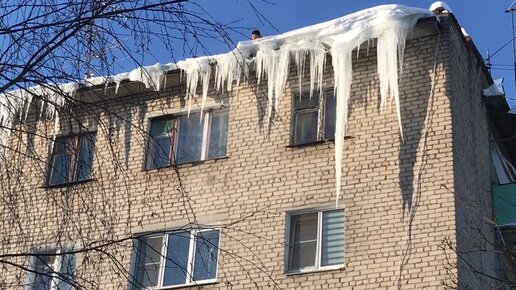 С крыши нашего дома сбивали огромные сосульки