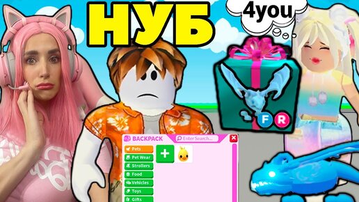 Помогаю нубам и беднягам в Адопт Ми | Реакция новичков на легендарного питомца в Adopt Me ROBLOX