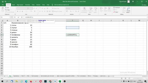 Функция LOOKUP в Excel