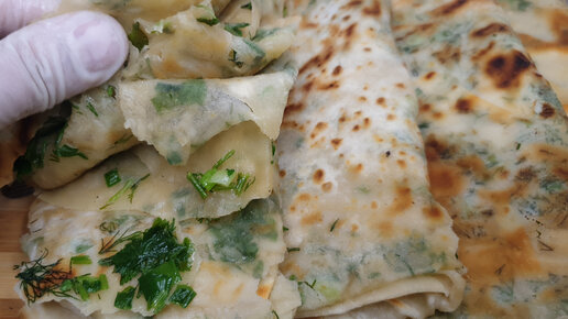 Мука, кипяток, зелень и масло/Вот, как нужно готовить Кутабы с зеленью/Очень вкусный ужин и абед