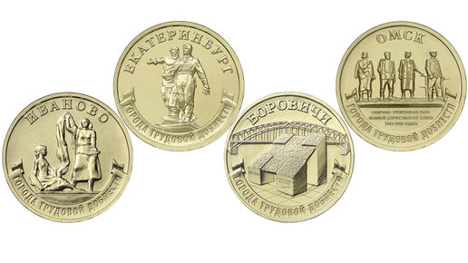 Монеты 10 рублей Города Трудовой Доблести выпуска 2021 года.