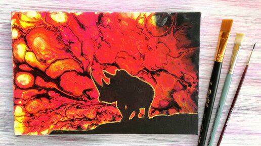 Рисую картину в технике Флюид-арт с силуэтом носорога