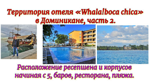 Территория отеля «Whala!boca chica» в Доминикане, часть 2. Расположение ресепшена и корпусов начиная с 5, баров, ресторана, пляж