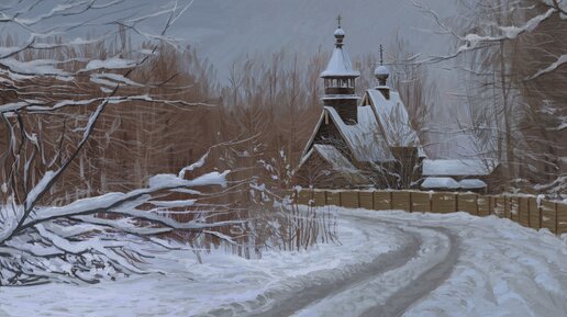 Цифровая живопись. Зимний пейзаж