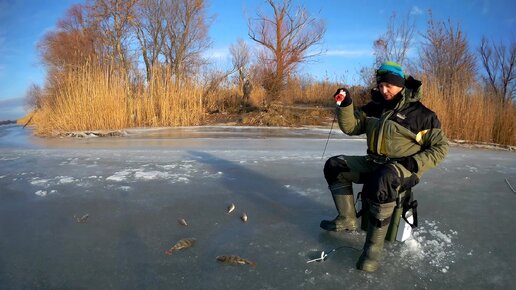 Ловля окуня на зимнюю блесну Лепесток. Зимняя рыбалка со льда.