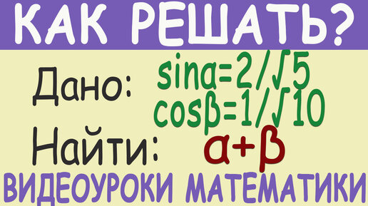 Как найти α+β, если sin α=2/5, cos β=1/10 где α и β - углы первой четверти. Тригонометрия 10 класс