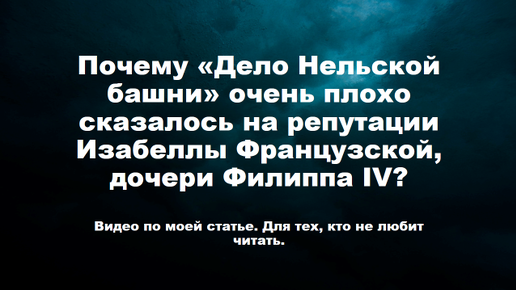 Почему «Дело Нельской башни» очень плохо сказалось на репутации Изабеллы Французской, дочери Филиппа IV?