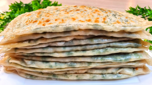 Смешиваю муку и кипяток, делаю кутабы с зеленью. Делюсь рецептом.