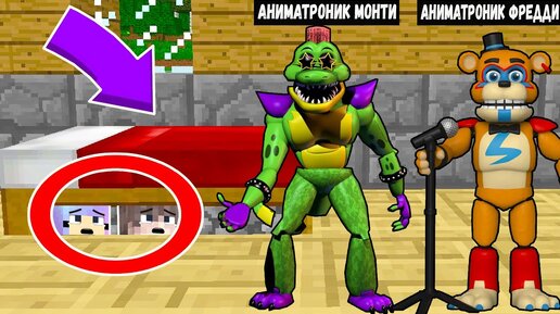 Я И ДЕВУШКА СКРЫВАЮСЬ ПОД КРОВАТЬЮ ОТ АНИМАТРОНИКА МОНТИ И ФРЕДДИ В МАЙНКРАФТ ИСПЫТАНИЯ
