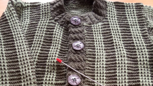 Теплая кофта двухцветным узором. Вяжется на одном дыхании .
