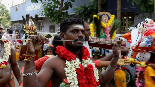 Верующим индийцам прокололи щеки спицами на ежегодном фестивале Тайпусам