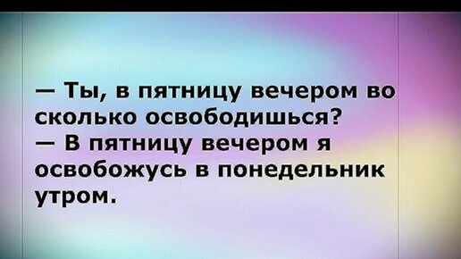 - Ты в пятницу вечером во сколько освободишься? - В пятницу вечером я освобожусь в понедельник утром...
