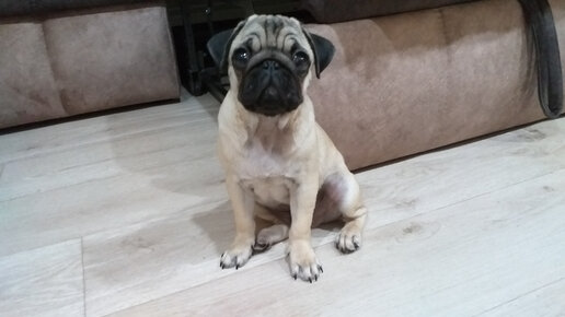 Собака породы МОПС выполняет команды за печенье с кроликом