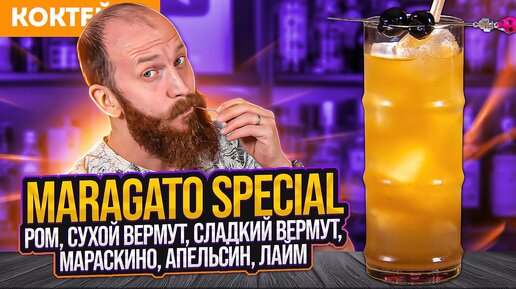 Ром, сухой вермут, сладкий вермут, ликёр Мараскино, апельсин, лайм — коктейль MARAGATO SPECIAL
