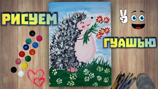 Рисуем ежика с цветами. Рисунок гуашью для детей и взрослых