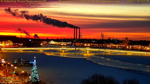 Чудо света - настоящий Санкт-Петербург в прямом эфире. Зимняя сказка, панорама реки Невы, достопримечательности.