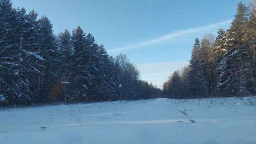 Солнце проглядывает сквозь сосны. Красивый вид из окна автомобиля