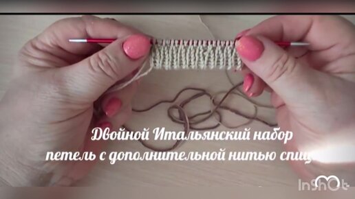 Двойной Итальянский набор петель с дополнительной нитью спицами.