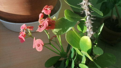 Зацвёл Молочай Миля (или Эуфорбия Милиуса) "Терновый венец" (Euphorbia milii) 21.01.2022.