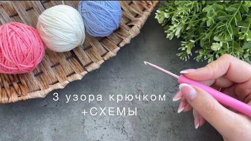 Сразу 3 шикарных плотных УЗОРА КРЮЧКОМ! + Схемы узоров! Вязание крючком!