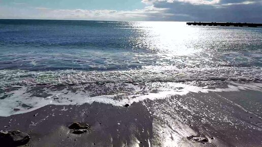 Крым в январе, зимнее море на пляже Кастрополь
