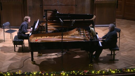 Николай Луганский и Вадим Руденко исполняю "Вальс" Мориса Равеля, переложение для двух фортепиано