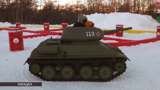 В городском парке Магадана дети могут покататься на мини-танках
