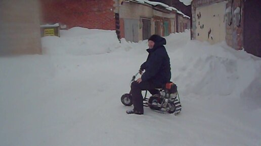 Мини снегоход с мотором от триммера своими руками. Первые испытания.
