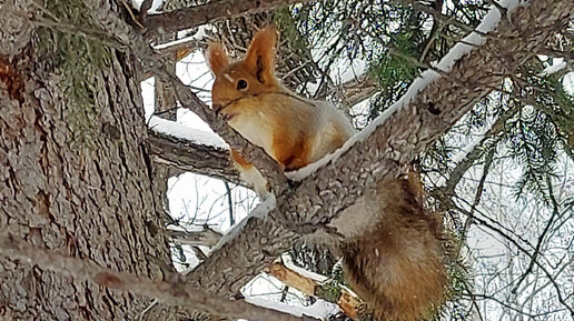Из жизни животных. Лесные белки в январе