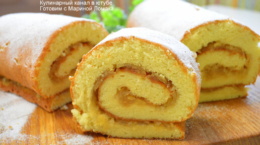 САМЫЙ ВКУСНЫЙ БИСКВИТНЫЙ РУЛЕТ С ЖАРЕНЫМИ ЯБЛОКАМИ