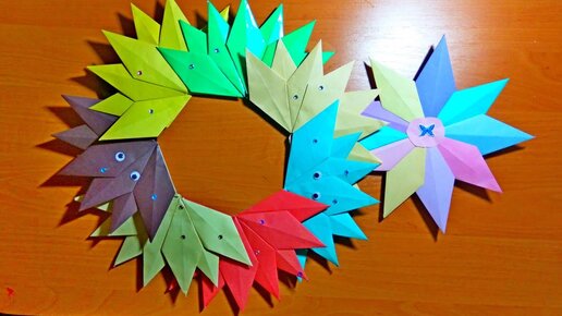 DIY! Красивые осенние поделки из бумаги. Оригами венок из кленовых листьев!
