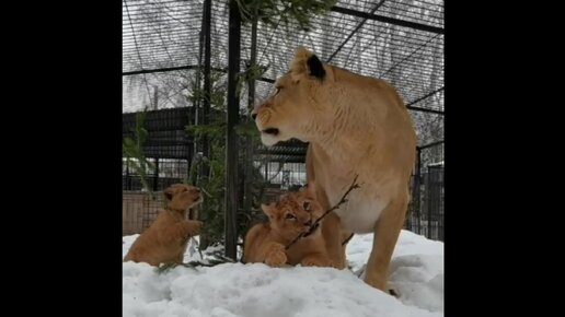 Барнаульский зоопарк выложил видео со львятами, которые увлеченно едят елку.