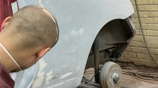Nissan Micra полная окраска в ярко красный цвет, на серебристой подложке
