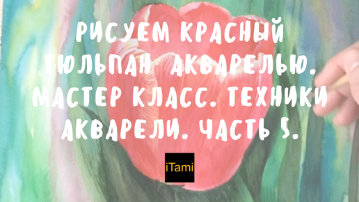 Рисуем красный тюльпан акварелью. Мастер класс. Техники акварели. Часть 5