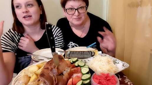 Семейный ужин почти по -немецки/рулька, соленая капуста/Вика,все-же в меня, любит кожу🤣