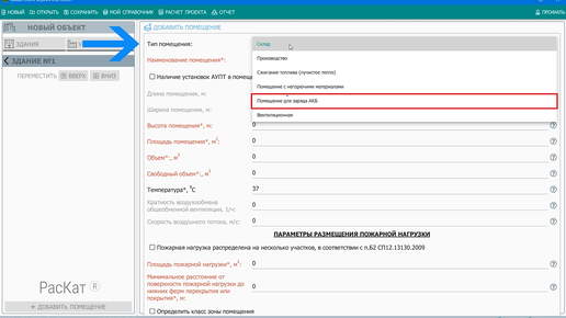 Определение категории помещения аккумуляторной в сервисе РасКат (Версия 2021-06-01)