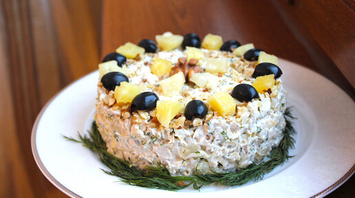 Праздничный салат с курицей и ананасами