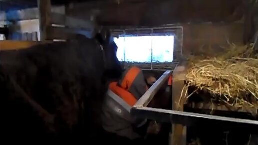 Побег из стойла 2. Опять Милка выломала скобу для привязи.