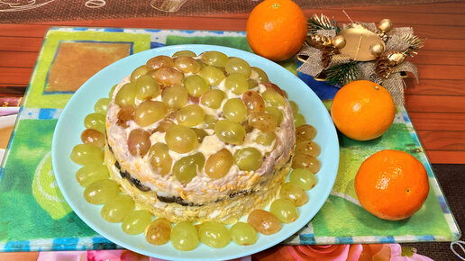 Салат "Перевёртыш" с курицей и виноградом. Рецепт приготовления.