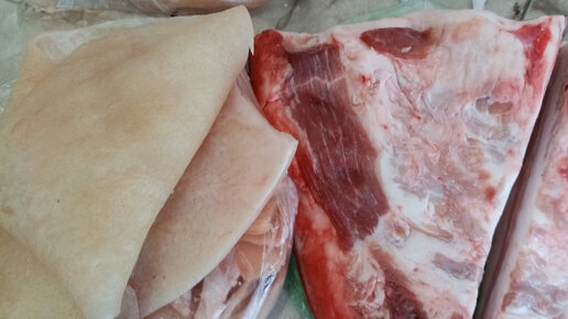Вот что купила на 800 руб. на Мини Рынке ( ШКУРКИ Свиные Сало и Пятачки). 22 января 2022г.