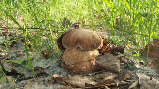 Первые белые грибы в пушку . Красотища . Грибник очень рад .