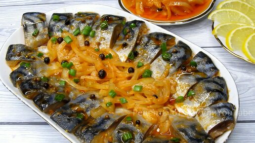 Маринованная скумбрия. От неё просто не оторваться. Настолько вкусно.