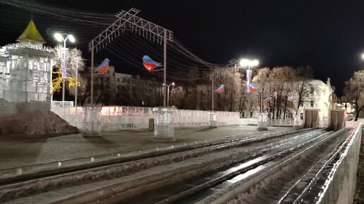 Ночь. Екатеринбург. Город захватил лед. Столица Урала в плену ледяных скульптур.