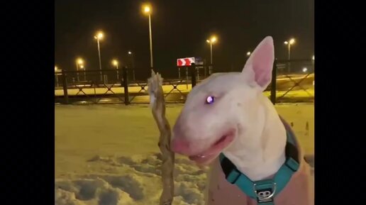 Древогрыз/ Бультерьер несколько дней работает над уничтожением поваленного дерева. Работы много, но он старается.