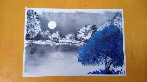Релакс-пейзаж. Синее дерево. Рисунок.